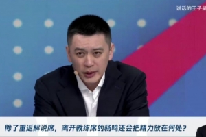 杨毅:“据我所知,对杨指导感兴趣的球队有好几支……他们正在进一步接洽。现在解说过渡一下,最终我觉得还是会回到他熟悉的舞台上。”