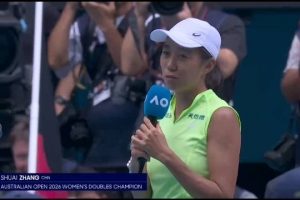张帅澳网女双夺冠演讲:感谢郑洁帮了我很多,感谢粉丝们